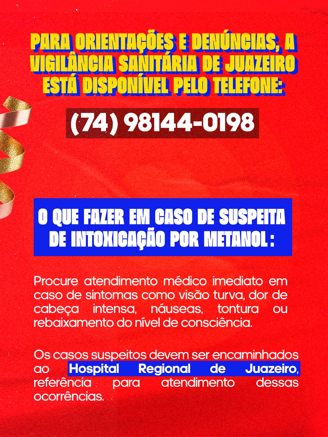 Para orientações e denúncias, a Vigilância Sanitária de Juazeiro está disponível pelo telefone (74) 98144-0198.
