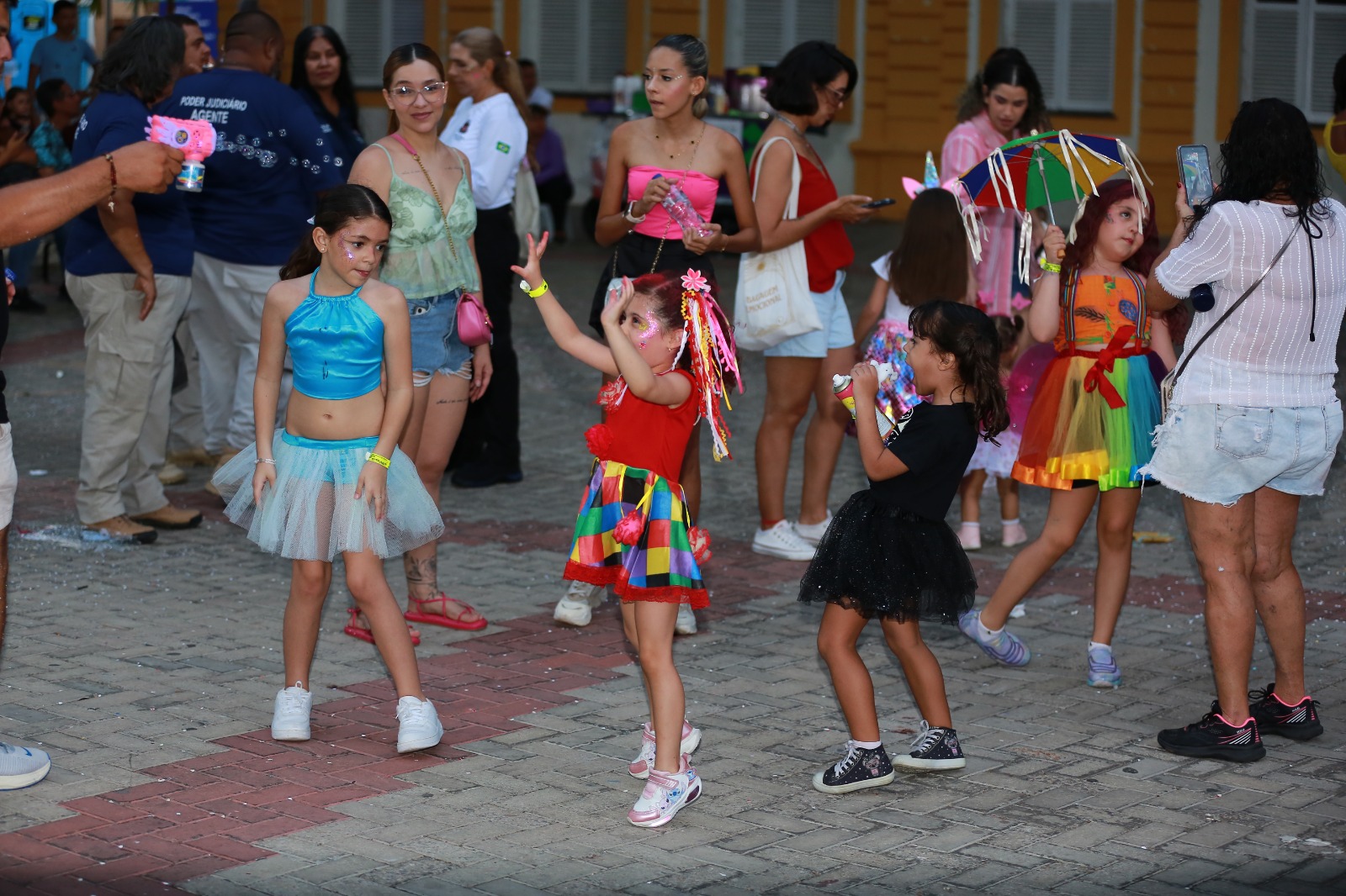 Em meio a muita espuma e confetes, pequenos foliões ocuparam a Praça Barão do Rio Branco, que se transformou em um verdadeiro reino da fantasia, onde fadas, princesas, bonecas falantes e super heróis dançavam, pulavam e coloriam o ambiente. Era a abertura oficial do Circuito Parlim, um espaço criado para a diversão da criançada.