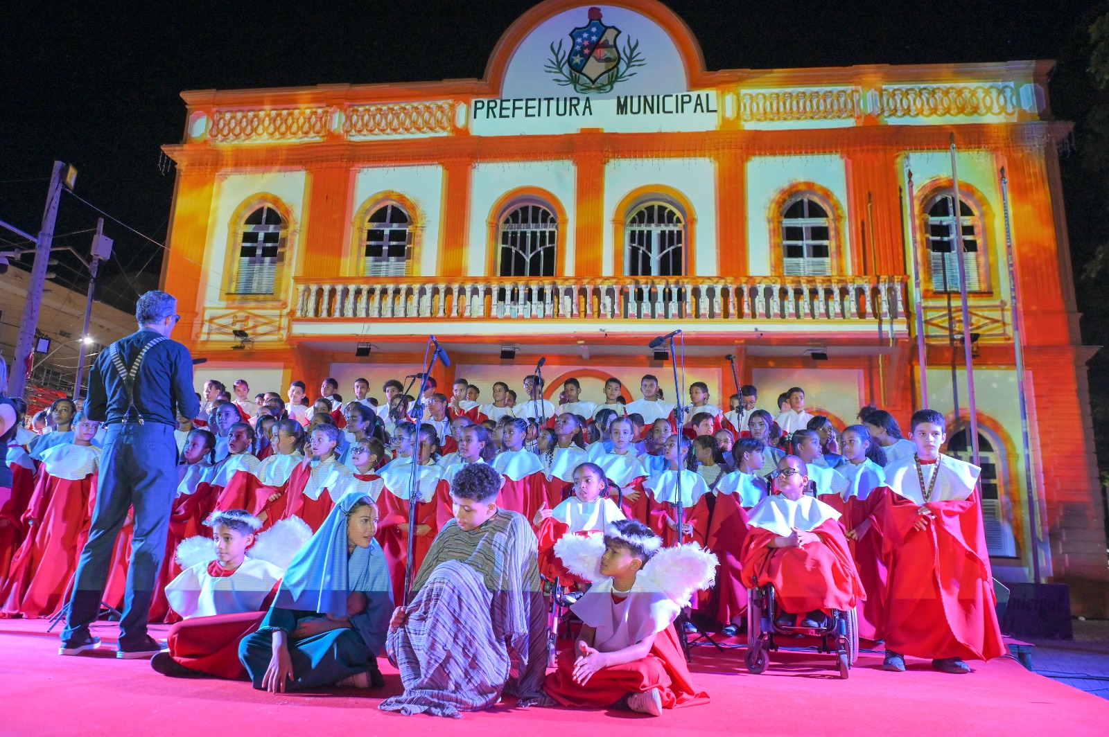 Diante de um cenário iluminado e com um show de projeções preparado especialmente para a programação, o coral interpretou clássicos natalinos e da Música Popular Brasileira. “As crianças emocionaram a todos. Elas fizeram uma linda festa sob a orientação dos professores Robson Matos e Edjane Rocha Lívio, trazendo espírito natalino para o Paço Municipal”, disse a superintendente Administrativa da Secretaria de Educação, Renata Gouvea.