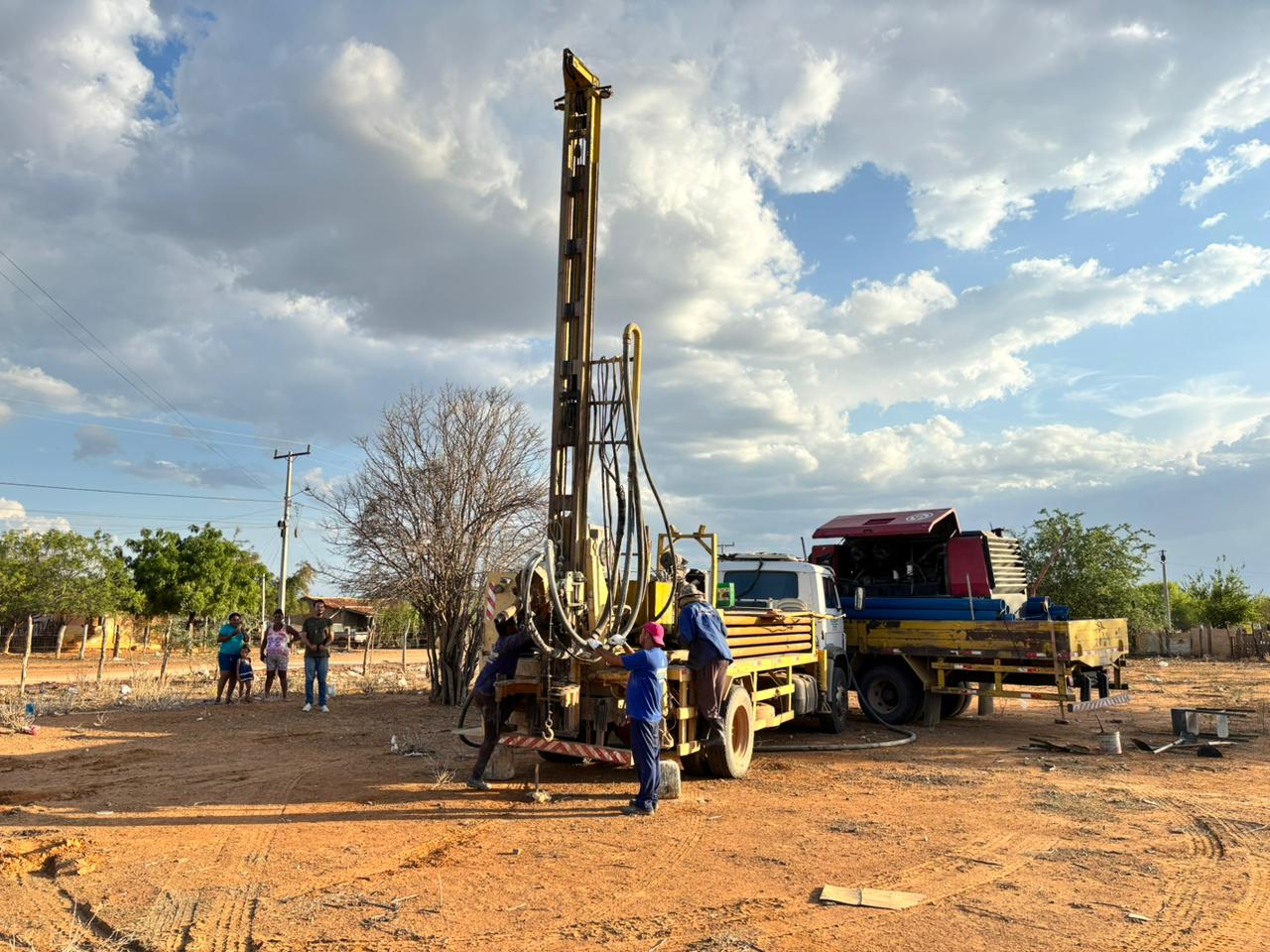 A comunidade de Manga, na região do Salitre, em Juazeiro, recebeu nesta quinta-feira (11) a perfuração de um poço artesiano, resultado direto da atuação da Defesa Civil de Juazeiro, que buscou a implantação do equipamento para atender uma das áreas mais afetadas pela falta de água no município. A perfuração apresentou grande vazão, garantindo um volume expressivo de água e oferecendo um suporte imediato às famílias que convivem diariamente com a escassez hídrica.
