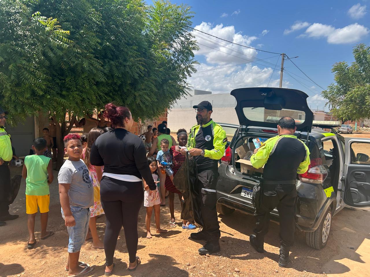 Entre sorrisos, abraços e olhares cheios de ternura, o fim de ano de dezenas de crianças de Juazeiro foi marcado por um gesto de carinho, respeito e esperança. Na manhã desta terça-feira (30), agentes da Autarquia Municipal de Trânsito e Transportes (AMTT) realizaram a doação de brinquedos para crianças dos bairros Nossa Senhora das Grotas, Antônio Guilhermino, Itaberaba e Tabuleiro.