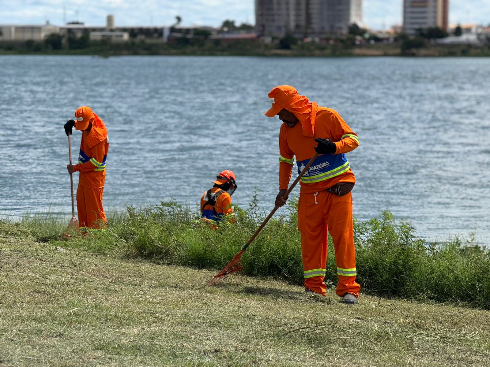 As ações também incluem mutirões de limpeza em diferentes localidades. As equipes atuaram simultaneamente na Vila Tiradentes, na Orla Nova (parte superior e inferior) e no bairro Dom José Rodrigues, além da limpeza da Praça do Ginásio de Esportes Aluísio Viana.