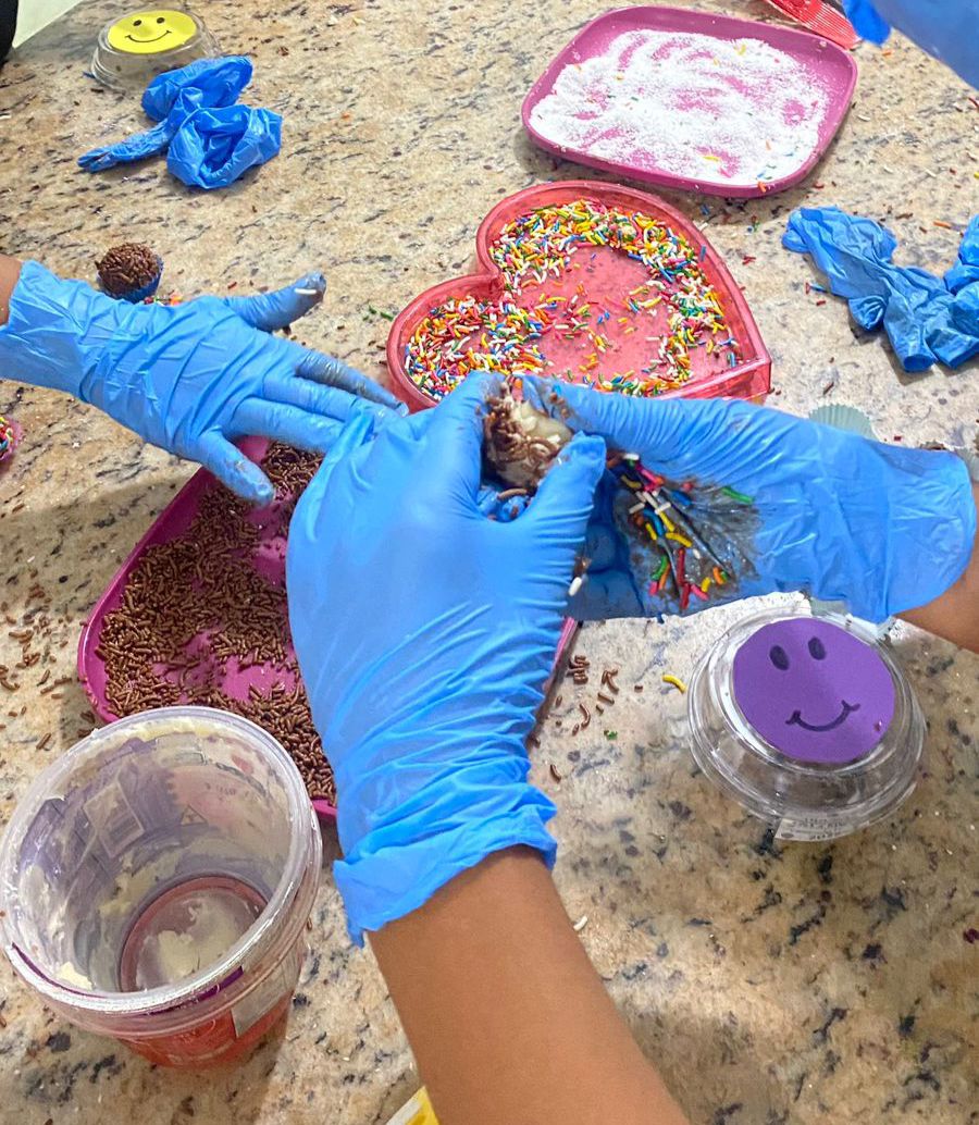 Durante a oficina, realizada na quarta-feira (8), as crianças participaram ativamente de todo o processo de preparo dos brigadeiros, aprendendo sobre cooperação, criatividade e autonomia. O momento também foi marcado por brincadeiras, partilha e afeto, fortalecendo vínculos e proporcionando uma experiência inesquecível para todos.