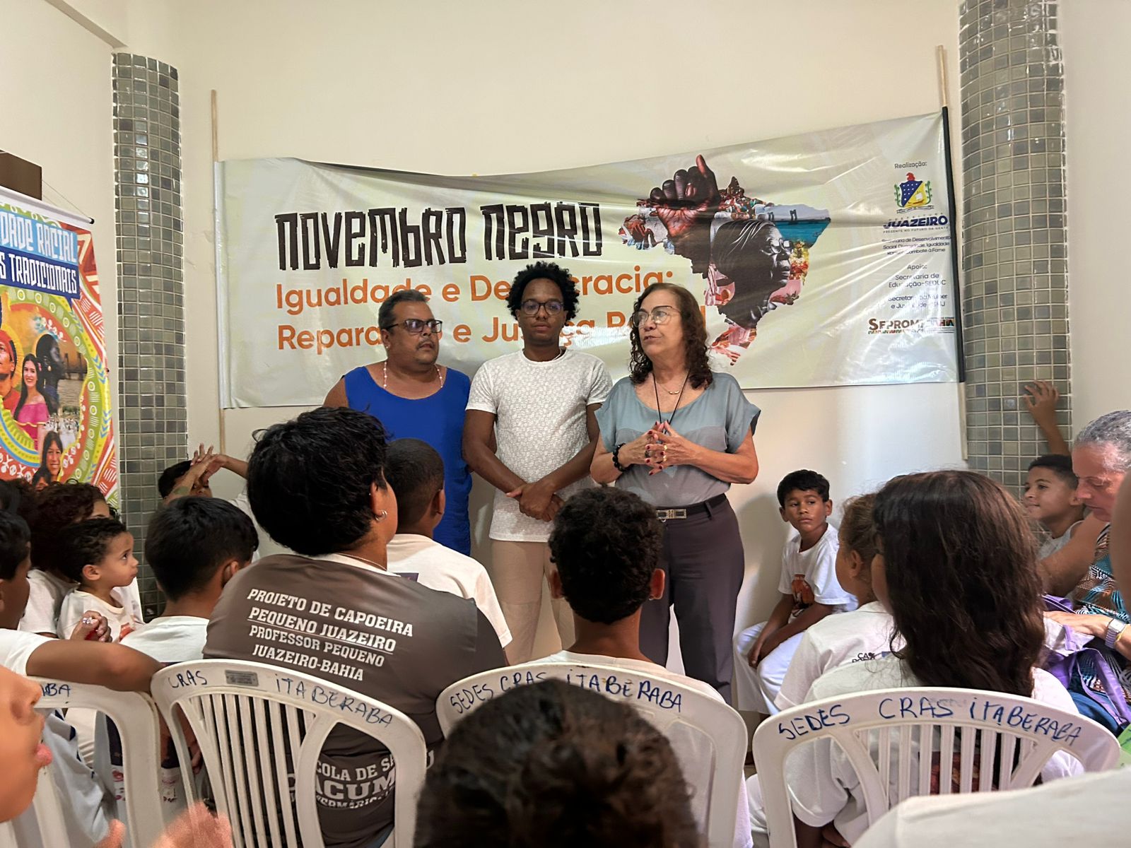 A Prefeitura de Juazeiro, por meio da Secretaria de Desenvolvimento Social, Diversidade, Igualdade Racial e Combate à Fome (Sedes), segue promovendo uma série de atividades alusivas ao Novembro Negro, que este ano traz o tema “Igualdade e Democracia: Reparação e Justiça Racial”. As ações também vêm sendo realizadas nos Centros de Referência de Assistência Social (CRAS) do município, fortalecendo o diálogo sobre racismo, identidade e valorização da cultura afro-brasileira.